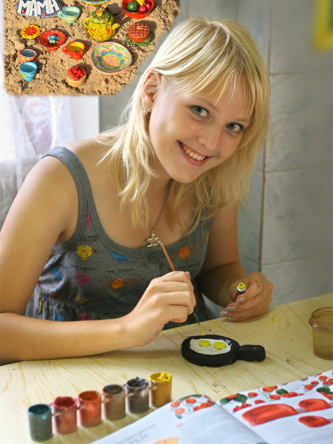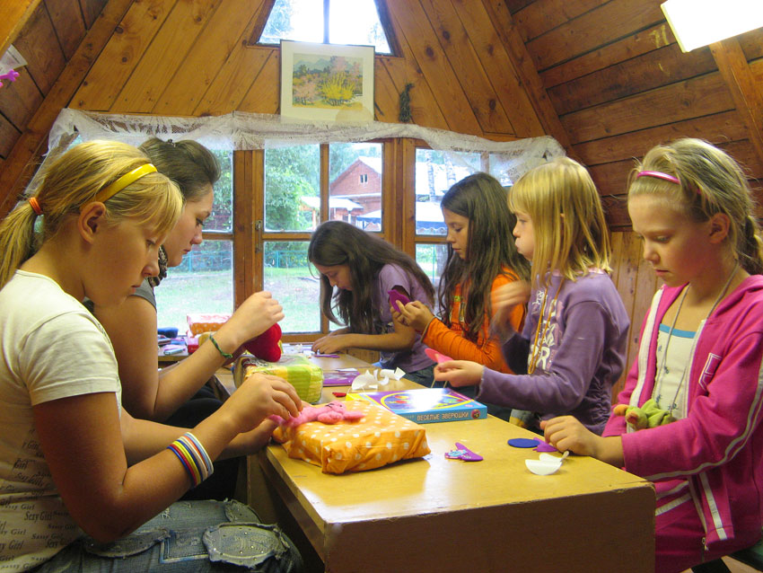Затем слепленные фигурки высыхают, обжигаются и вновь возвращаются в руки детей — чтобы разноцветные краски покрыли изделия. Ребята в лагере от мала до велика очень любят этот кружок — ведь где еще можно получить удовольствие: просто и со вкусом.
