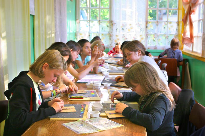 Затем слепленные фигурки высыхают, обжигаются и вновь возвращаются в руки детей — чтобы разноцветные краски покрыли изделия. Ребята в лагере от мала до велика очень любят этот кружок — ведь где еще можно получить удовольствие: просто и со вкусом.